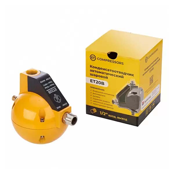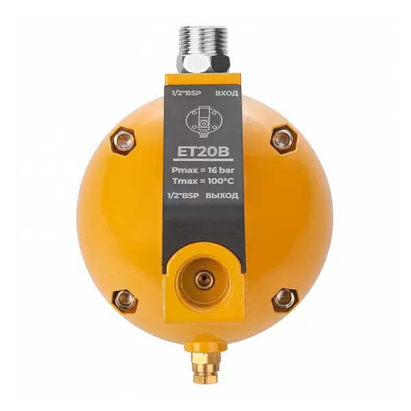 Автоматический конденсатоотводчик поплавкового типа ET20B предназначен для установки снаружи колбы всех типов фильтров, сепараторов, ресиверов и других компонентов пневматической сети, где скапливается влага.