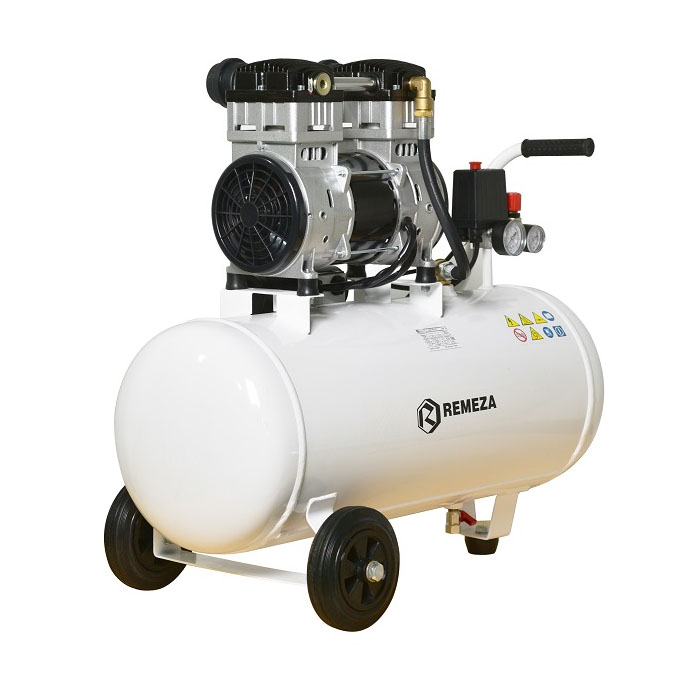 Универсальный малошумный безмасляный поршневой компрессор с ресивером 50 л и производительностью 250 л/мин при давлении 8 бар.