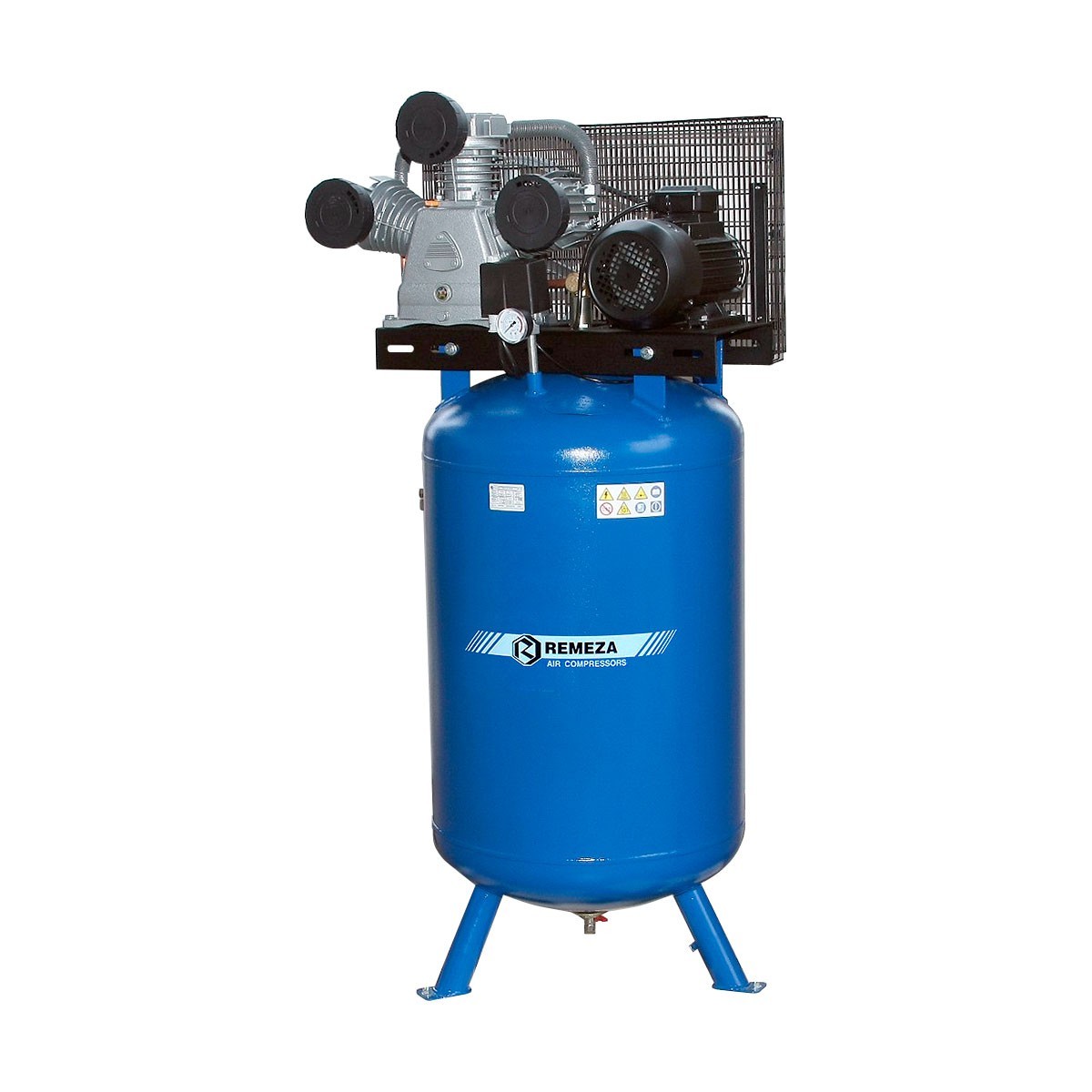 REMEZA СБ4/Ф-270.LB75В - трёхцилиндровый одноступенчатый поршневой компрессор с ременным приводом на вертикальном ресивере 270 л. производительностью 950 л/мин и максимальным давлением 10 бар. Кран с резьбой G1/2" для подачи воздуха потребителю. Напряжение питания 380 В.