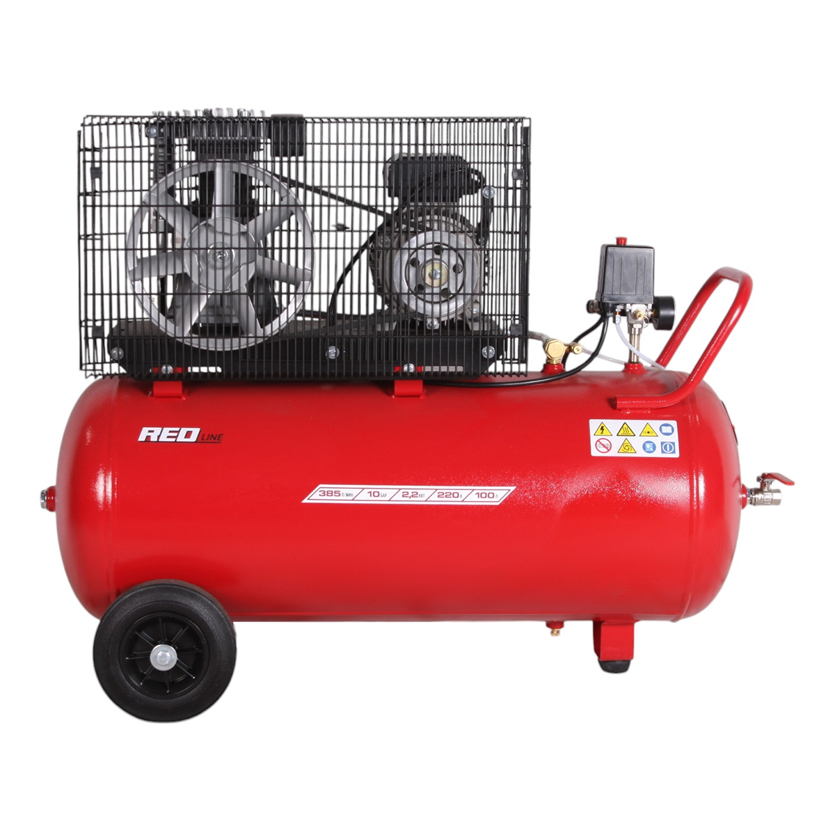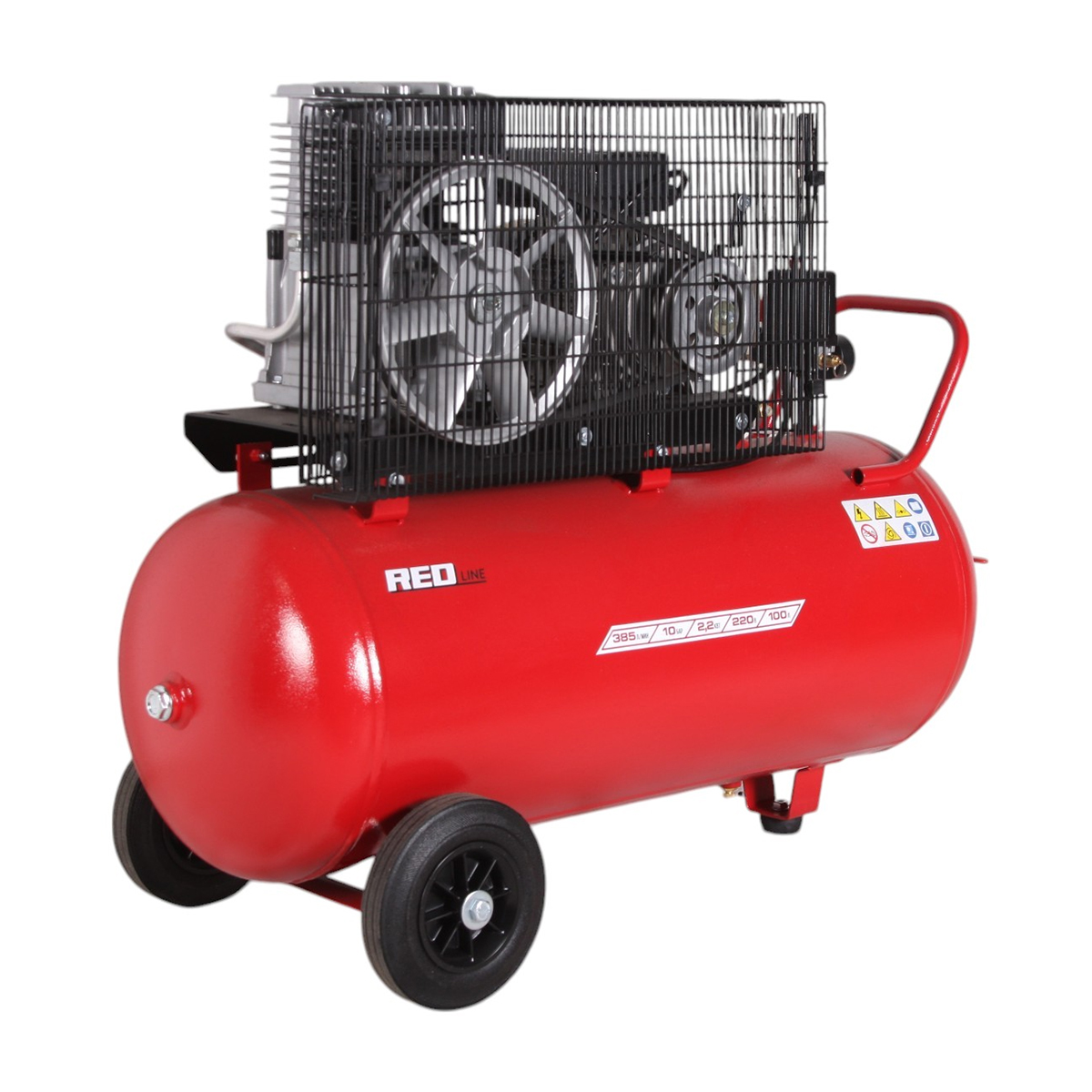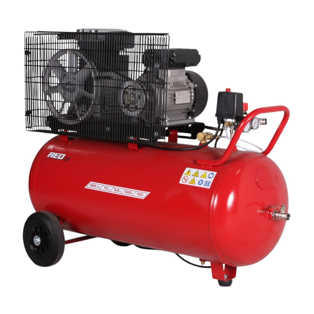Ременной привод, цилиндры/ступени 2/1, ресивер 100 л, производительность 385 л/мин, 10 бар, 2.2 кВт, 380 В/3~/50 Гц, 85 кг