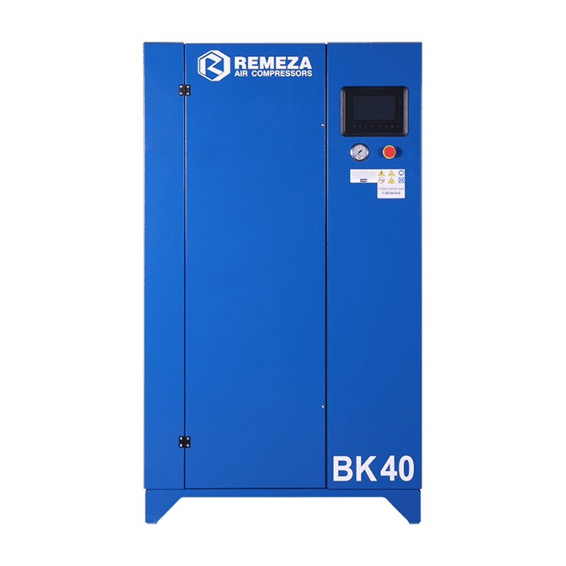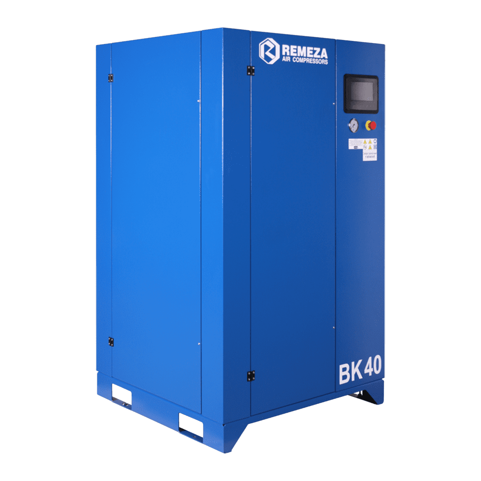 Винтовой маслозаполненный компрессор с воздушным охлаждением REMEZA BK40-8: производительность 5200 л/мин, макс. давление 8 бар, мощность 30 кВт.