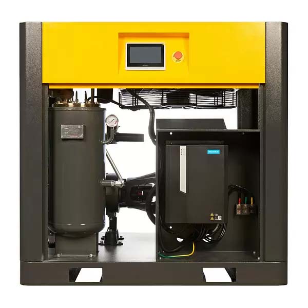 Компрессор с частотным регулированием вращения двигателя позволяет гибко подстраивать производительность, исходя из текущей потребности в сжатом воздухе, и экономить до 35% электроэнергии.