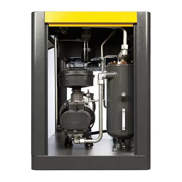 Винтовой компрессор с двигателем на постоянных магнитах и частотным преобразователем ET SL 45-08 VS PM (IP55) при мощности двигателя 37 кВт достигает производительности 7500 л/мин. Рабочее давление 8 бар.